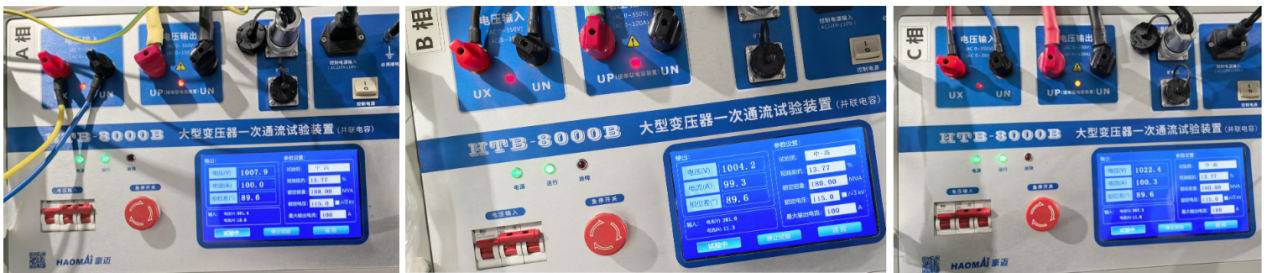 The device can select different voltage application/current injection points and transformer short-circuit contacts in the primary system circuit of newly-built, expanded, or renovated substations or converter stations. The current injection can be extended to the busbars and line bays connected to each winding of the transformer. Each phase's injected current has a fixed phase relationship with the test power supply. By matching the voltage input from the secondary circuit of the voltage transformer to the test device, the simulated load and vector verification tests of control and protection devices can be completed.