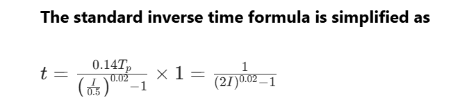 The inverse time exponent is set to 0.02, indicating that the general inverse time formula is adopted, where the current inverse time base value Ip=0.05A, and the current inverse time setting 0.14Tp=1s.