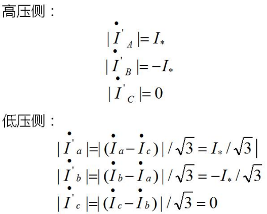 The relay protection tester only provides two-phase current, and only single-phase or two-phase current is injected into each side for verification. When conducting Y/Y verification for the high-to-medium voltage side, inject a current I∗ into phase A of either side. The conversion formula of the protection device is as follows:
